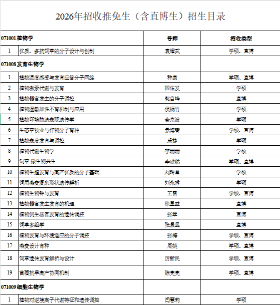 一、2026年植物分子生理学重点实验室硕士及直博生招生信息如下: