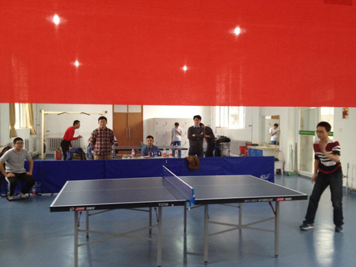 40多职工和学生参加比赛,其中PI 4名,比赛采取了3局2胜制的小组循环赛和5局3胜制的淘汰赛,比赛历时三天、两个场地的激烈拼杀,最终男子组前三名为刘诚、刘永秀、金京波,女子组前三名为张倩倩、梁小娜、郭志爱。