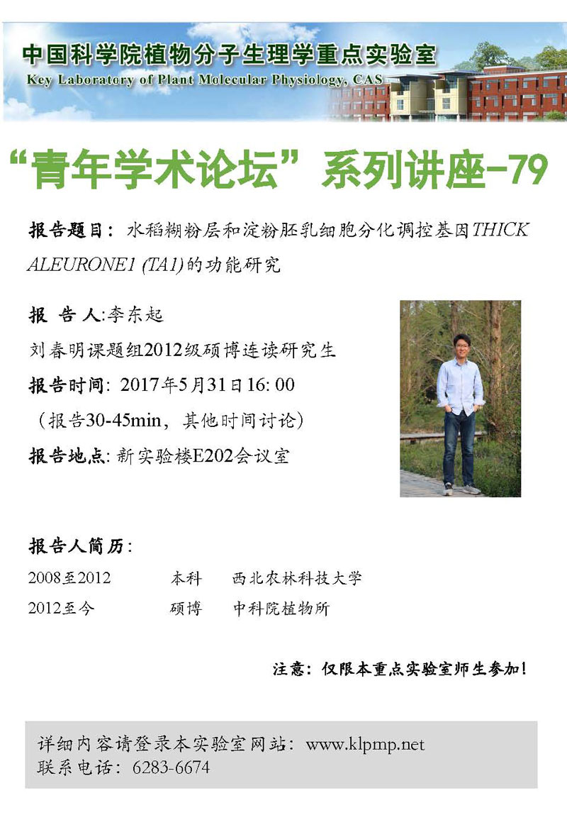 - “植物生物学论坛”系列讲座