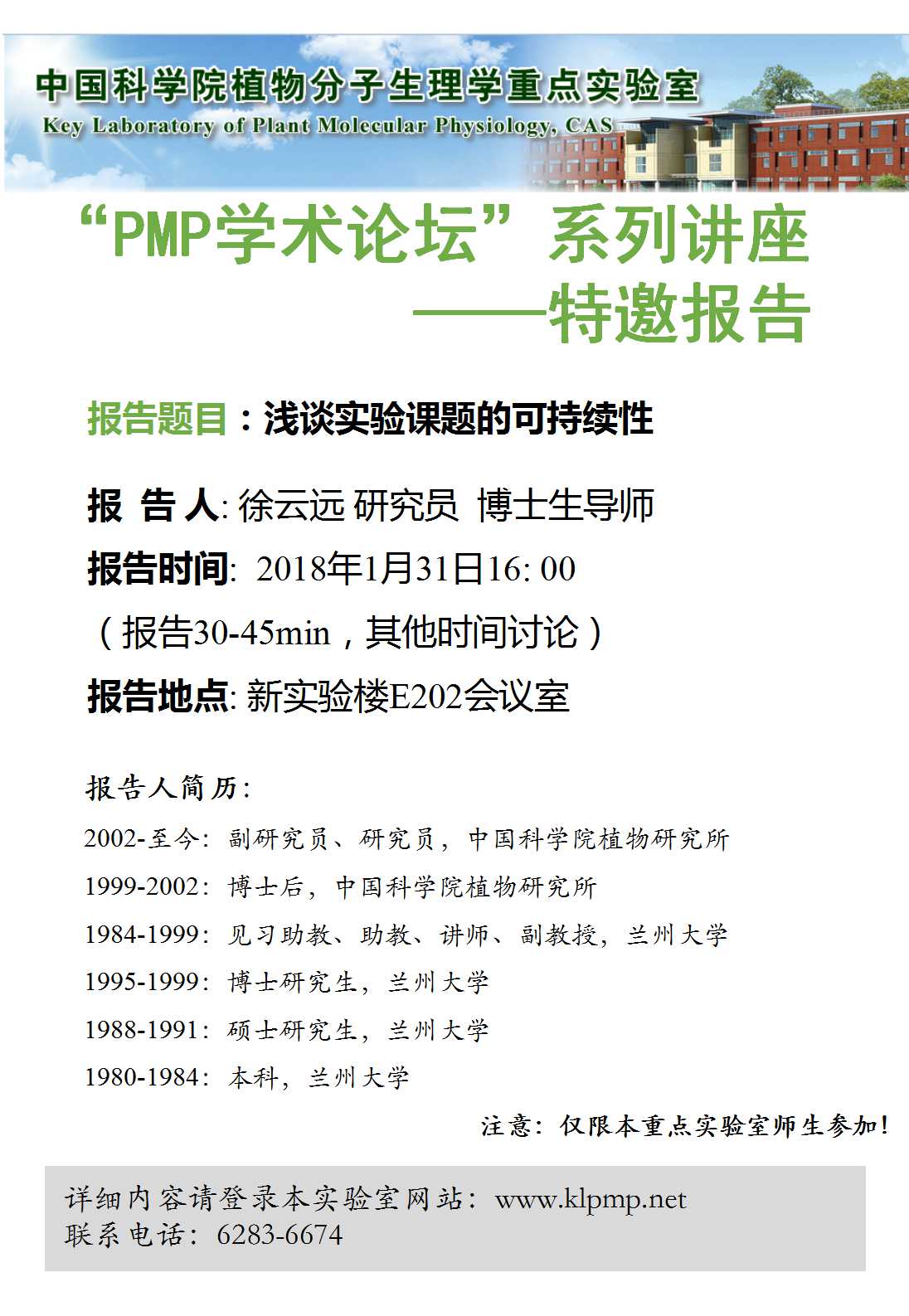 “PMP青年学术论坛”系列讲座—86(特邀报告)