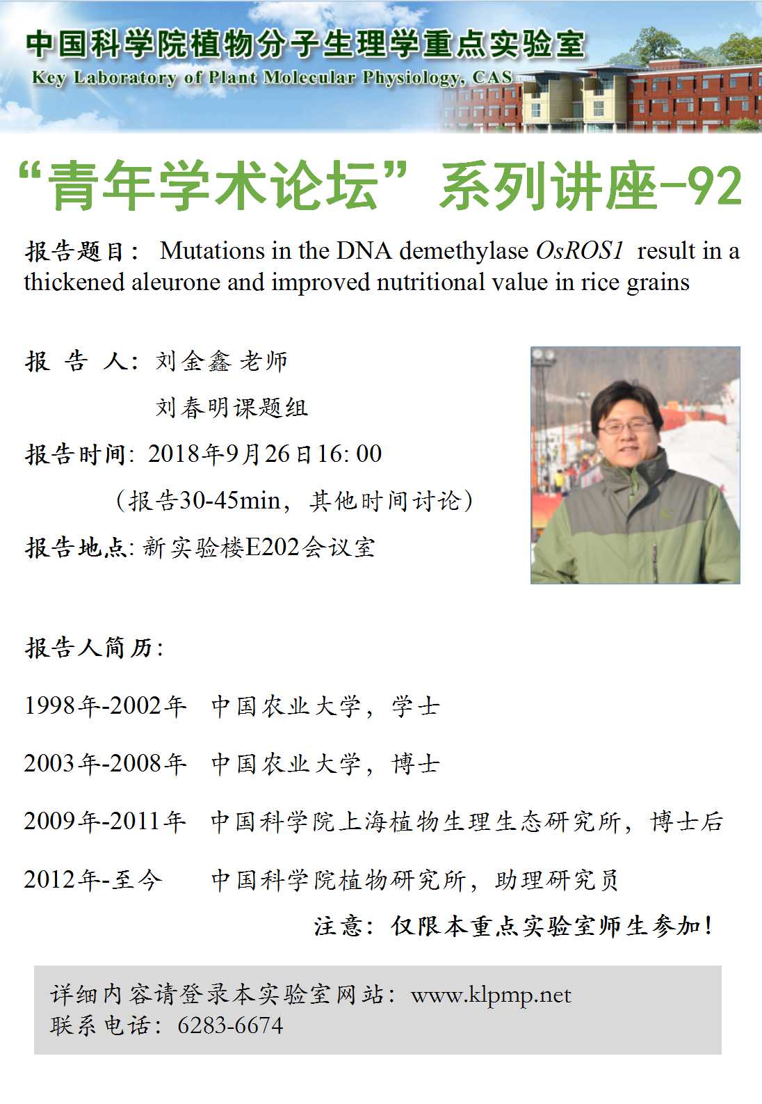 - “植物生物学论坛”系列讲座