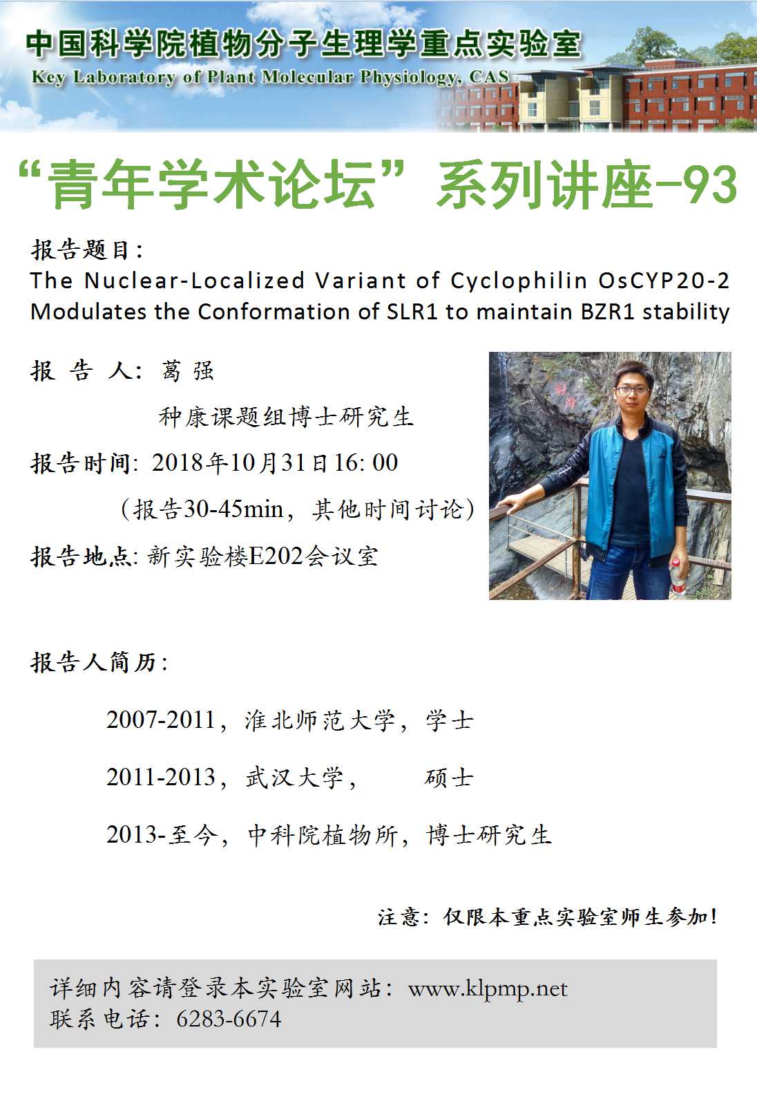 - “植物生物学论坛”系列讲座
