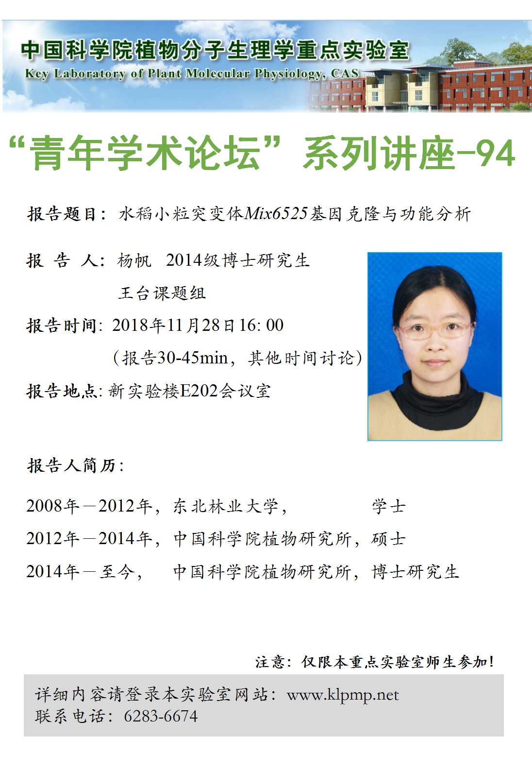 - “植物生物学论坛”系列讲座