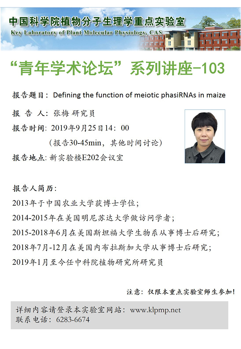 - “植物生物学论坛”系列讲座