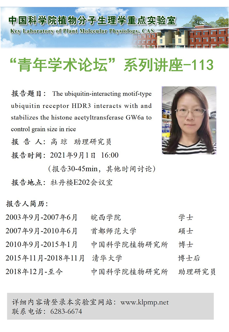 - “植物生物学论坛”系列讲座