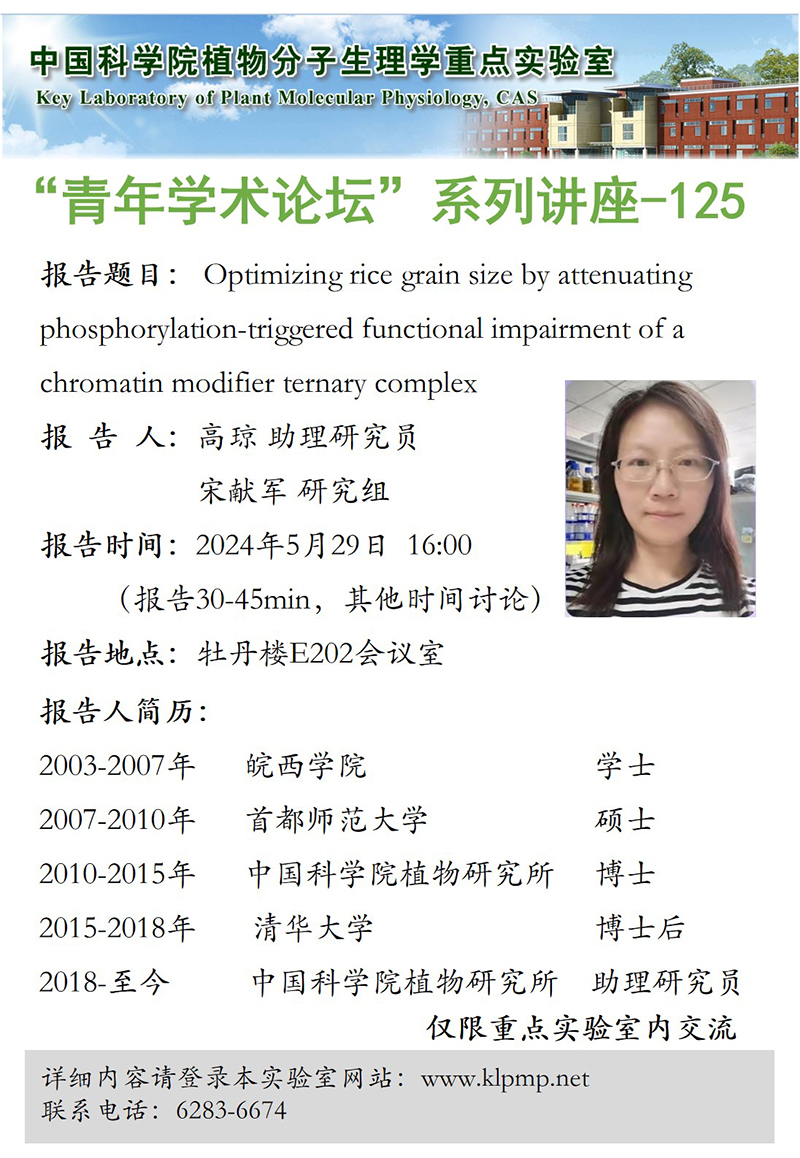 - “植物生物学论坛”系列讲座