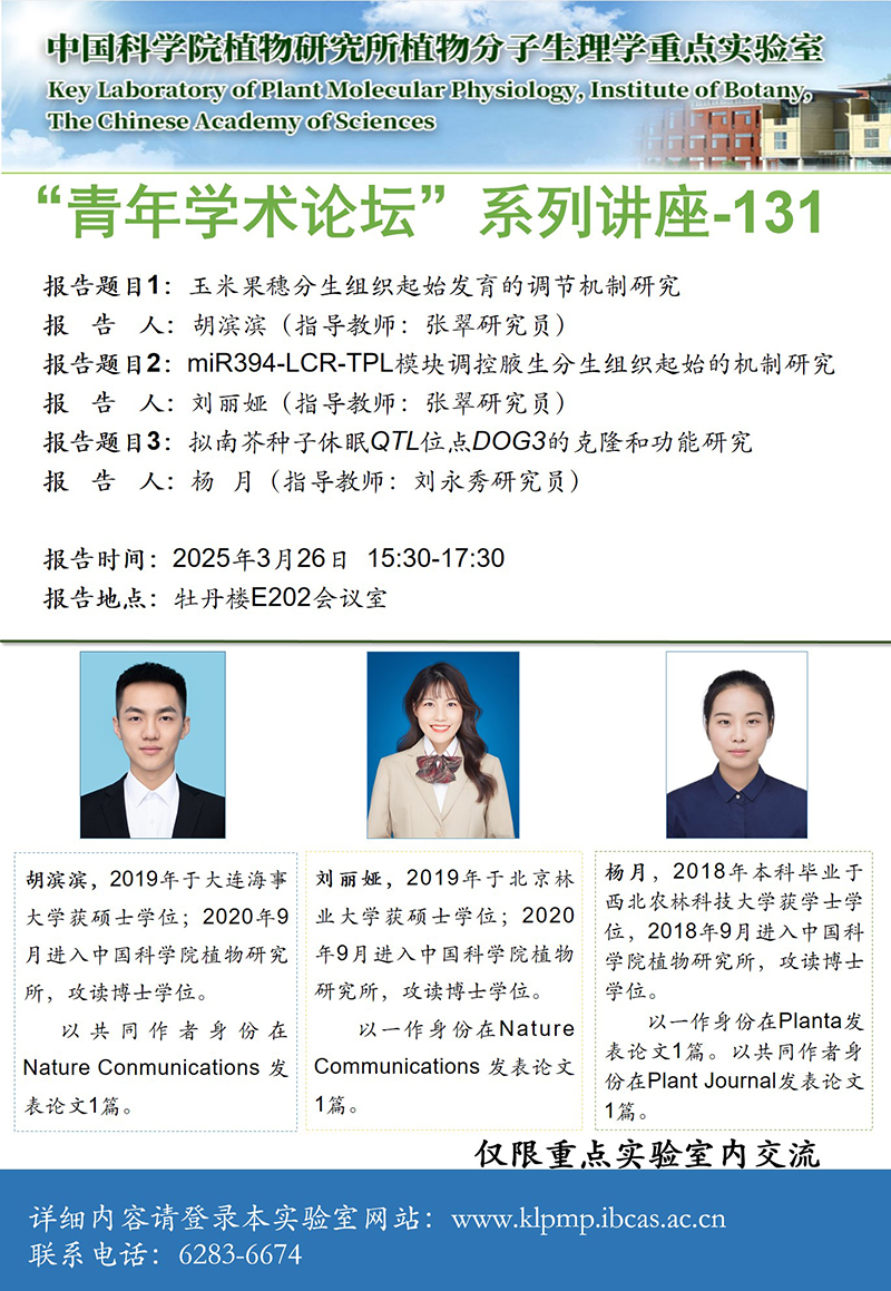 - “植物生物学论坛”系列讲座