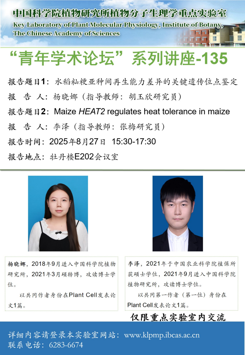 - “植物生物学论坛”系列讲座