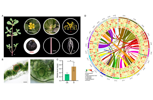 绝大部分植物,包括主要农作物如水稻、小麦和大豆等,进行C3光合作用,在高温、高光照和干旱条件下,光呼吸显著降低光合速率。为了降低光呼吸的影响,高等植物进化出C4和景天酸代谢(CAM)途径两种高效的碳浓缩机制。C4植物的光合作用能力约是C3植物的两倍,同时具有更高的水分和氮素利用效率;而CAM植物则往往是极其耐旱的,尽管其生长缓慢。少数C4植物能够在夜间进行二氧化碳的固定,产生类似CAM途径的光合模式。马齿苋(Portulaca oleracea)作为最早被发现具有C4 + CAM光合模式的植物;它耐旱,生命力极强,其也被广泛用来探究这一复杂机制的发生,相关研究将有助于打造抗旱高产作物。然而,至今为止,C4和CAM整合的分子基础及其起源进化的过程仍有待进一步研究。