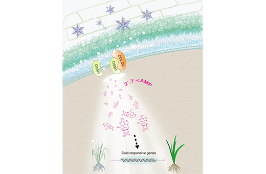 中国科学院植物研究所的种康院士团队在前期研究中报导了膜蛋白COLD1及COG1感受低温引起防御反应(Ma et al., 2015;Xia et al., 2023),它们分别通过钙离子和激酶级联信号途径激活下游基因的应答。该团队新近发现2’,3’-cAMP作为新的第二信使应答感受器COLD6-OSM1引发低温防御信号途径(Luo et al., 2024)。该成果近日在Molecular Cell以题为“COLD6-OSM1 module senses chilling for cold tolerance via 2',3'-cAMP signaling in rice”在线发表。
