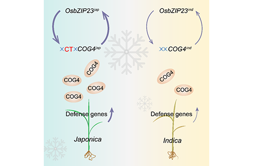 耐冷粳稻品种在COG4启动子区(COG4jap)的-317位携带碱基CT,而籼稻中COG4ind在该位点缺失CT。低温条件下,粳稻中OsbZIP23和COG4形成更强的正反馈环,更加有效地防御低温伤害。