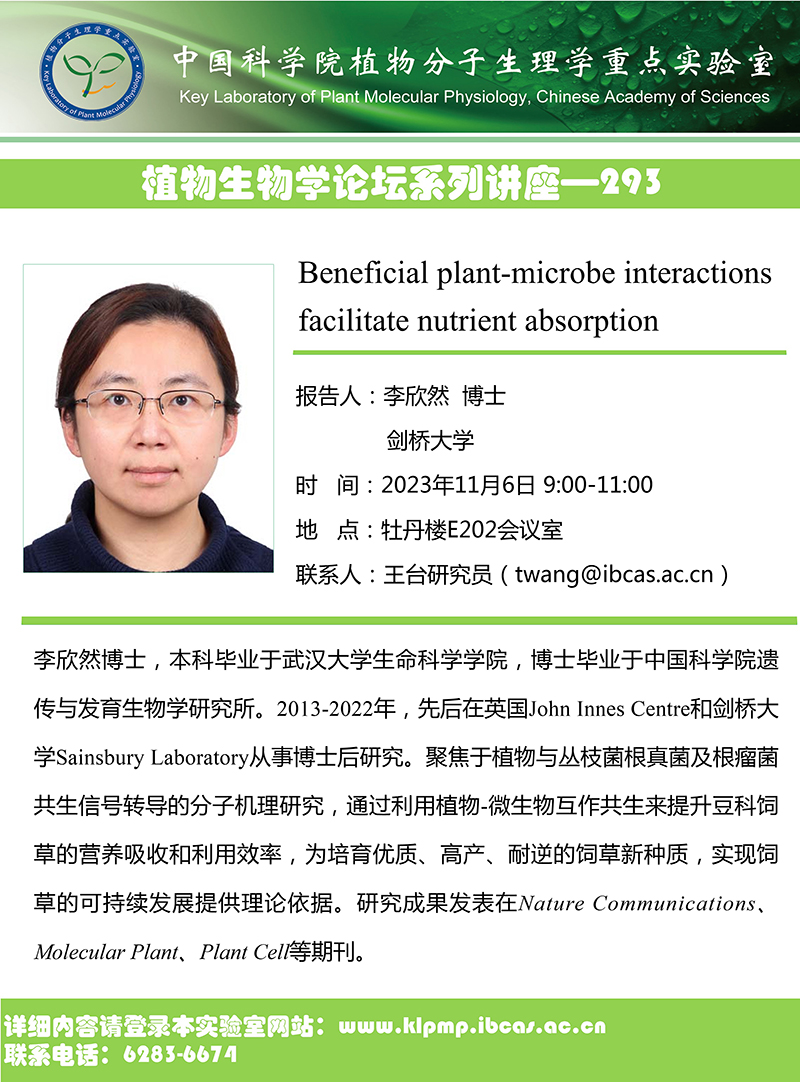 “植物生物学论坛”系列讲座—293:Beneficial plant-microbe interactions facilitate nutrient absorption