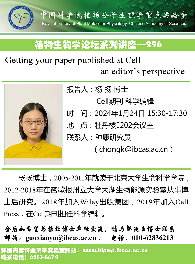“植物生物学论坛”系列讲座—296: Getting your paper published at Cell - an editor’s perspective