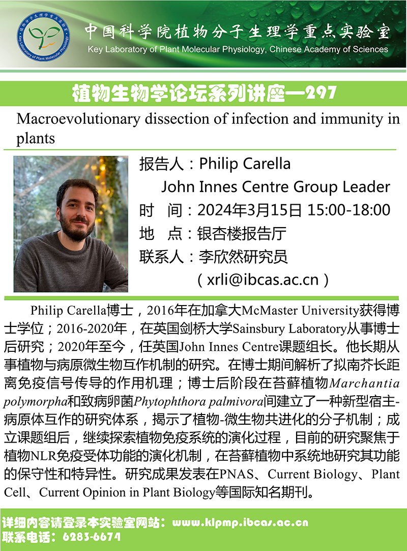 “植物生物学论坛”系列讲座—297: Macroevolutionary dissection of infection and immunity in plants