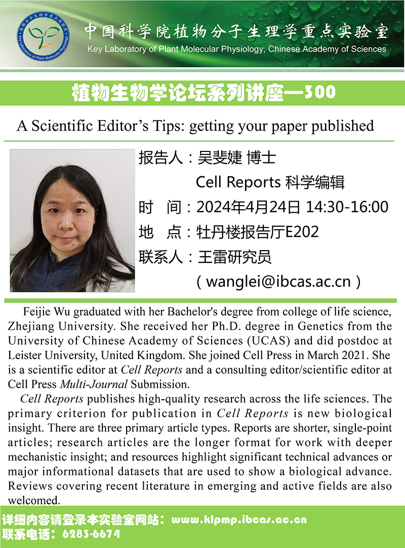 “植物生物学论坛”系列讲座—300: A Scientific Editor’s Tips: getting your paper published
