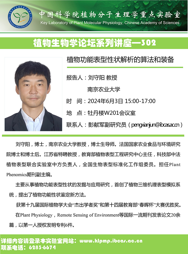 “植物生物学论坛”系列讲座—302: 植物功能表型性状解析的算法和装备