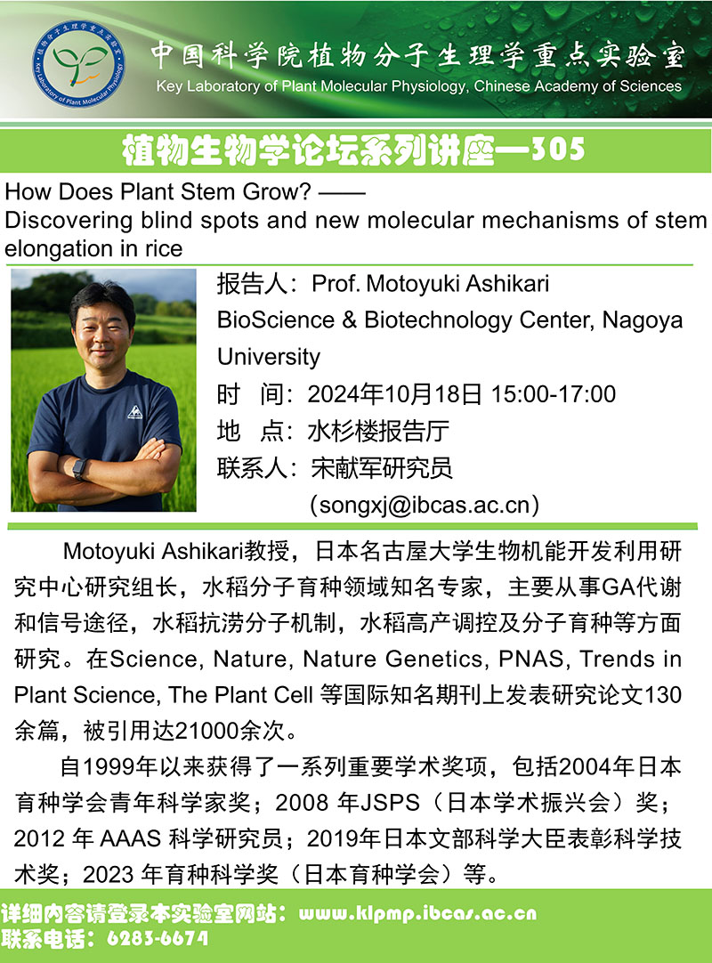 “植物生物学论坛”系列讲座—305: How Does Plant Stem Grow? ——Discovering blind spots and new molecular mechanisms of stem elongation in rice