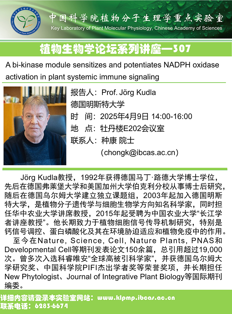 “植物生物学论坛”系列讲座-307: A bi-kinase module sensitizes and potentiates NADPH oxidase activation in plant systemic immune signaling