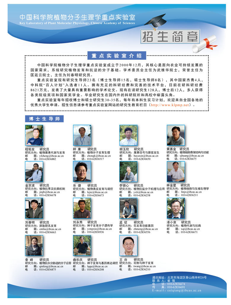 传真:cuiqiang@ibcas.ac.cn Email:cuiqiang@ibcas.ac.cn 网址:http://www.klpmp.ibcas.ac.cn/