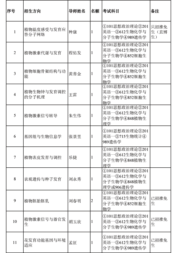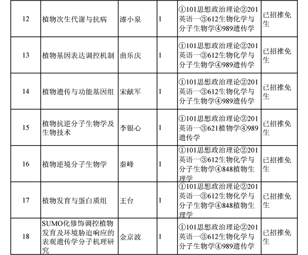 植物分子生理学重点实验室2015年攻读硕士学位研究生招生专业目录(2014年10月14日更新)