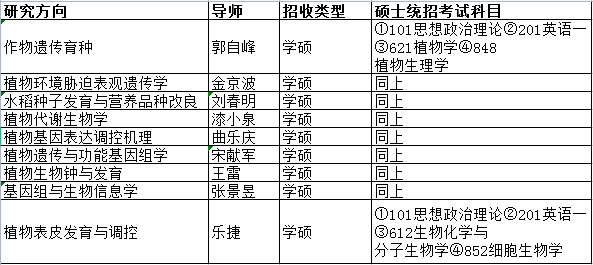 植物分子生理学重点实验室2023级硕士研究生招生导师及学科内容如下: